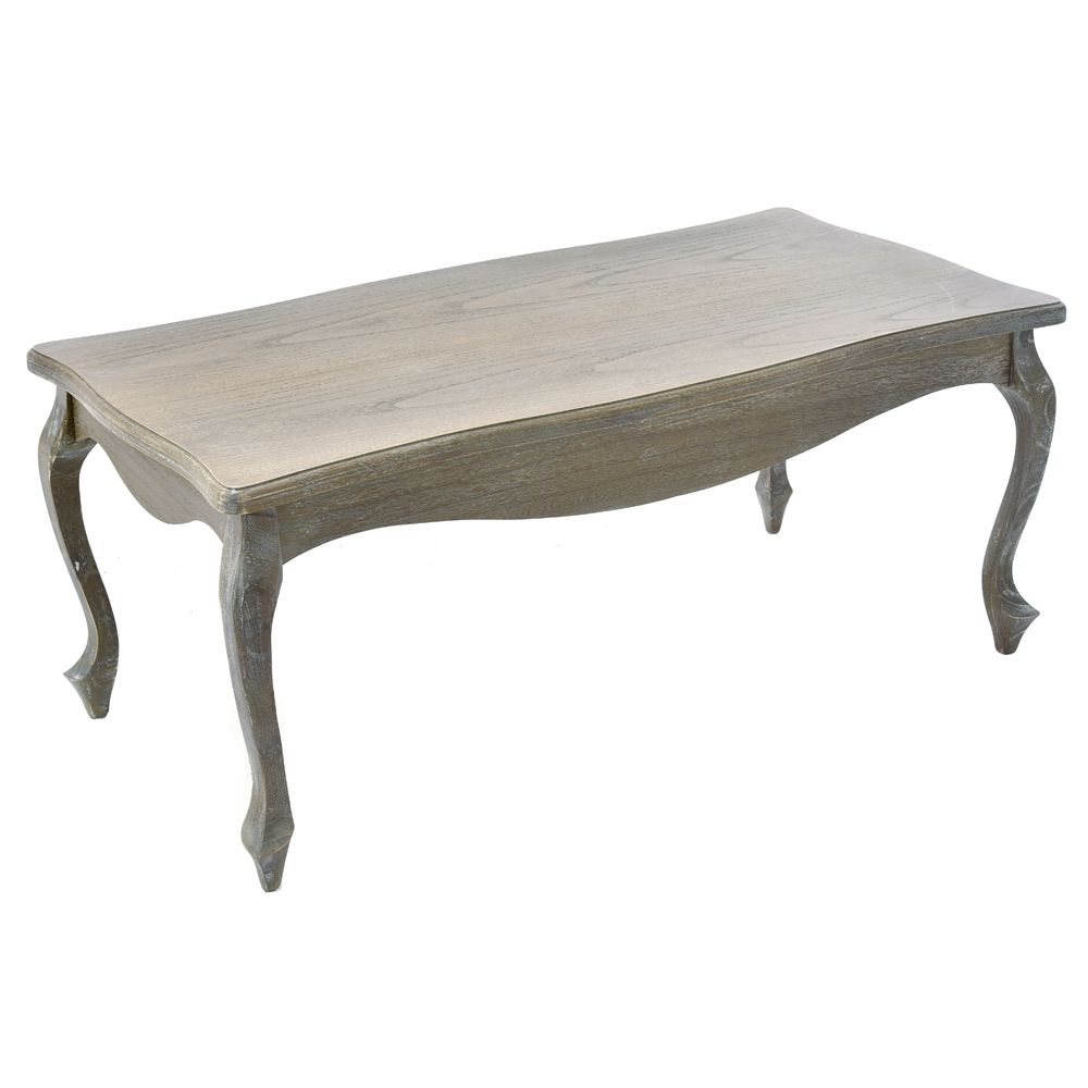 Country style wooden low coffee table. Made of pine wood and mdf. Brown color with washed white style.