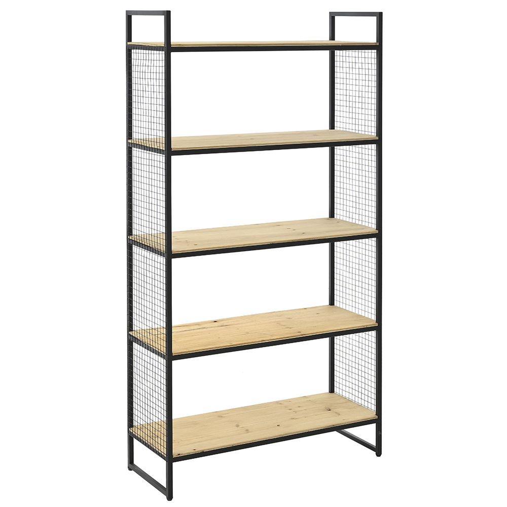 Metal shelf with wood 5 positions 80x30x152 height with side wire mesh the shelves are 29.5cm from each other