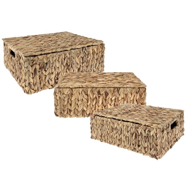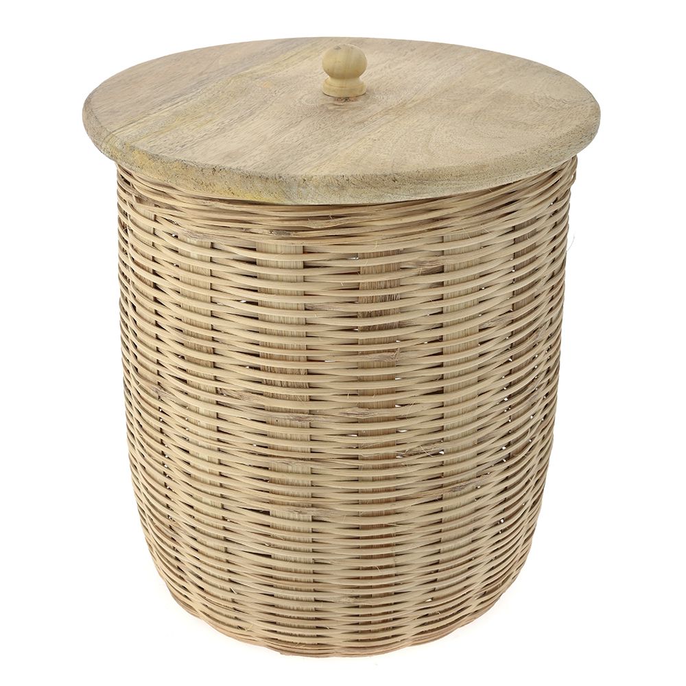 Wicker wicker basket with removable lid with knob made of mango wood 32x32x37cm.