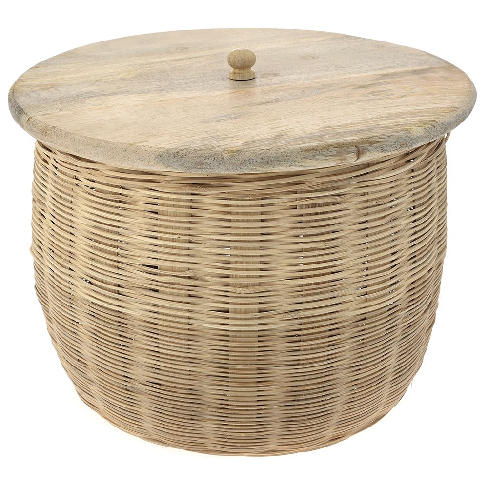 Wicker wicker basket with removable lid with knob made of mango wood 40x40x32cm.