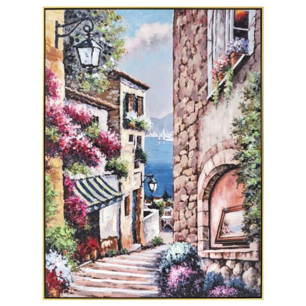 ΠΙΝΑΚΑΣ ΜΕΣΟΓΕΙΑΚΟ ΤΟΠΙΟ ΕΛΑΙΟΓΡΑΦΙΑ 92Χ122 ΜΕ ΧΡΥΣΗ ΚΟΡΝΙΖΑ