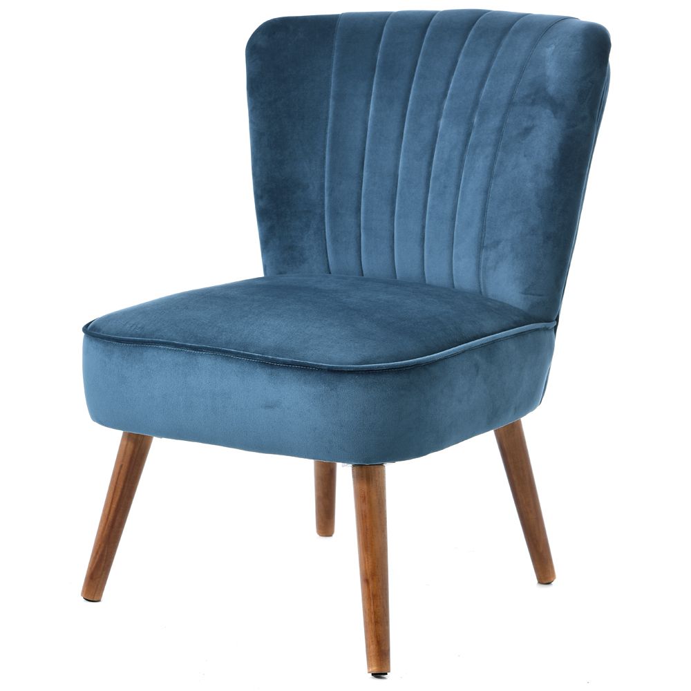Πετρόλ μπλε βελούδινη αναπαυτική πολυθρόνα 60χ65χ76εκ με ξύλινα πόδια.